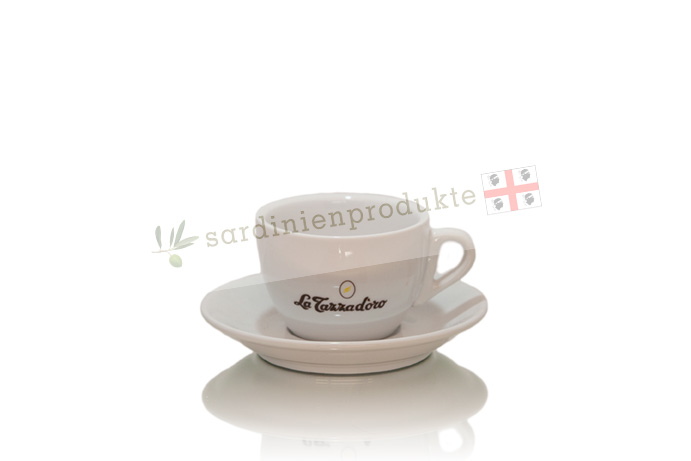 Die La Tazza d'oro Cappuccinotasse mit Unterteller ist eine schalenartige Tasse mit braunem La Tazza d'oro Schriftzug und Logo. Sie ist das perfekte Zubehör für alle Fans von La Tazza d'oro Kaffee und drückt die Liebe zur süditalienischen Espressokultur aus. Höhe: 6cm Durchmesser: 8cm Fassungsvermögen: ca 160ml