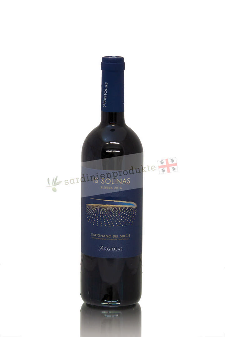 Der "Is Solinas" reift in Eichenfässern und seit dem Jahrgang 2014 ist er als Riserva zu 100% aus Carignanotrauben verfügbar. Der Wein zeigt ein tiefes Rot und besticht mit einem feinen und würzigen Bouquet. Es finden sich Noten roter Früchte mit einem Hauch Balsamico in der Nase. Der Wein ist weich und harmonisch am Gaumen mit einem langen Abgang.